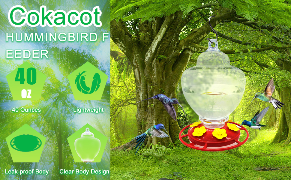 40 Ounces Large Hummingbird Feeder Cokacot LeakProof