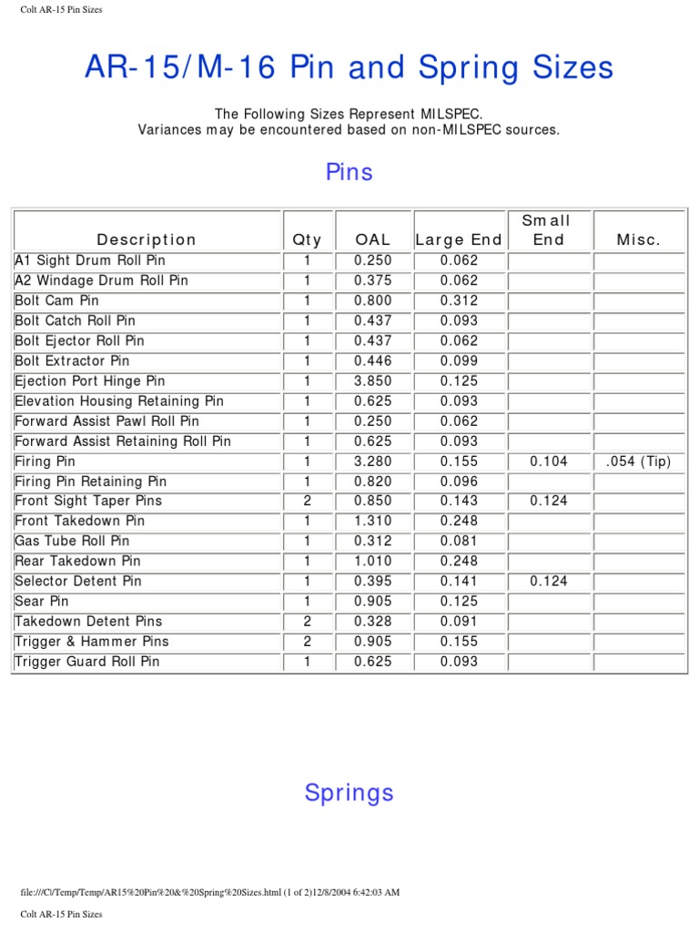 AR15 Pin and Spring Sizes Military Technology Firearms