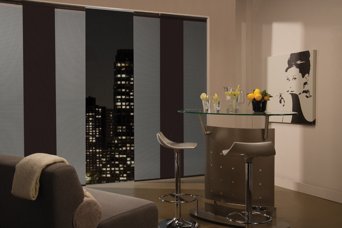 Designer Elements Blackout Sliding Panel Track Blinds Sliding Glass Door Panel Track Blinds update your home with panel track blinds by selectblinds.com. stack light control in your favor with the contemporary styling of panel track shades. godear design deluxe adjustable sliding panel are perfect for french doors, patio door, balcony door, closet door, and any large windows. Overlapping panels smoothly retract and stack for perfect light control on. These are. Sliding Glass Door Panel Track Blinds.