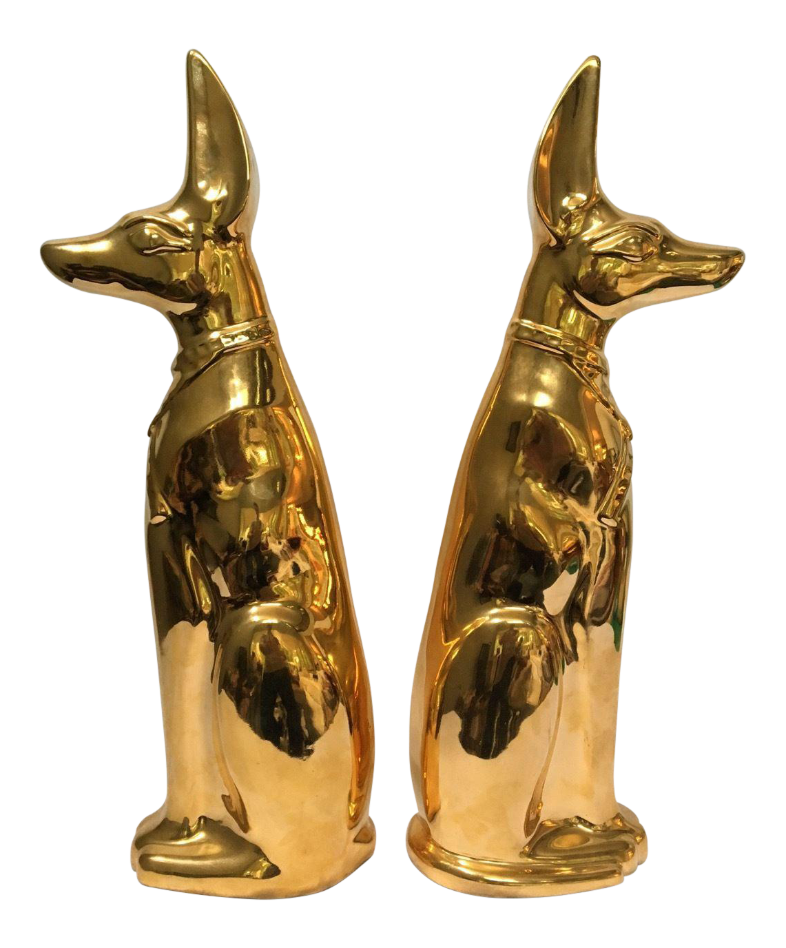 Gold Brass Tone Egyptian Dog Statues A Pair Chairish