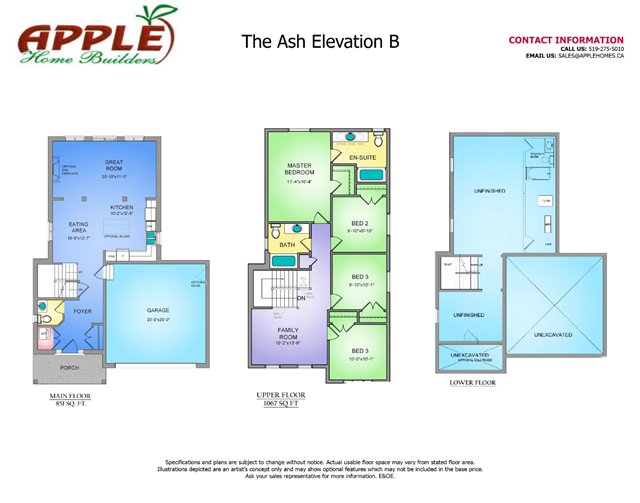 The Orchards The Ash Elev. B Floor Plan, Tavistock ON Livabl