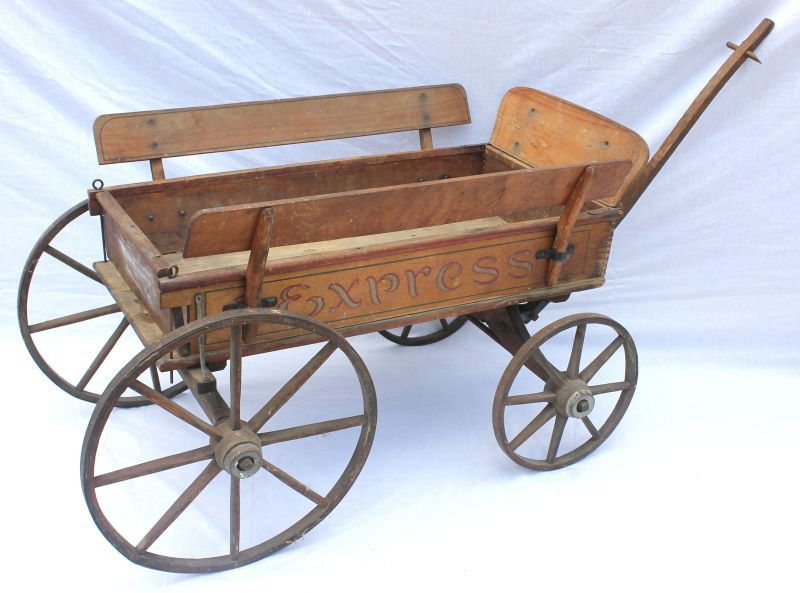 wonderful antique wooden "Express" wagon w orig metal