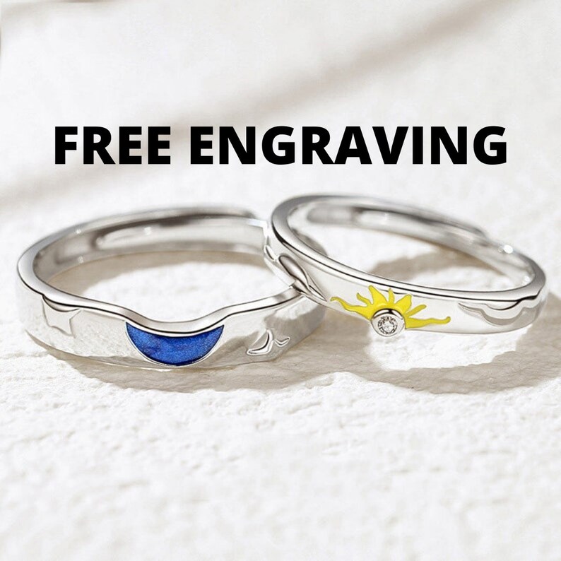 Sterling silver Sun & Moon matching promise couple rings Etsy Cute Promise Rings Moon Here are our favorite sets to shop. this sweet and celestial promise ring features a chic deconstructed design with a crescent moon on one end and a star on the other. A promise is forever, right? what's even sweeter than wearing a promise ring to signal your commitment? Find opal, gemstone promise rings,. Just like our shimmering moonstones.. Promise Rings Moon.