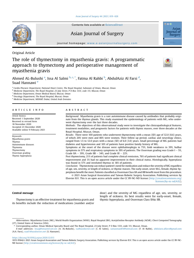 The role of thymectomy in myasthenia gravis PDF Thymus Causes Of