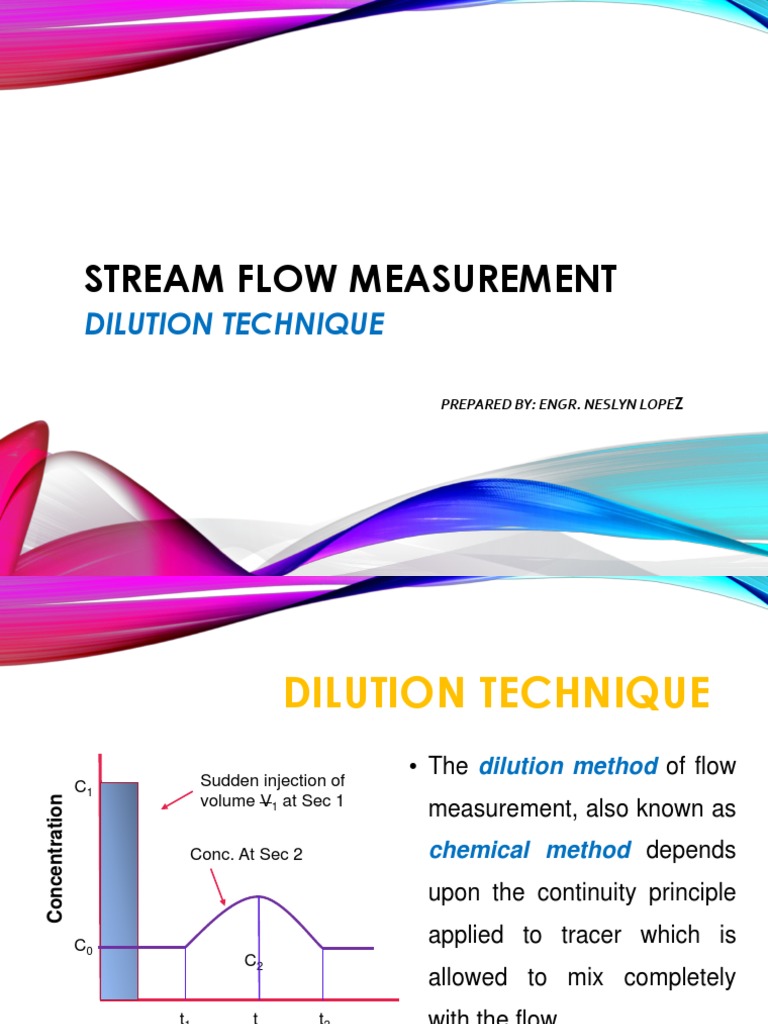 STREAM FLOW MEASUREMENT Dilution Method Of Streamflow Measurement the basic principle of dilution gauging is to add a known quantity of a tracer to a stream and observe its concentration in the. tracer dilution methods using salt and rhodamine wt (rwt) are commonly used to measure discharge in steep mountain streams. the salt dilution method is based on the point injection of a solution of. Dilution Method Of Streamflow Measurement.