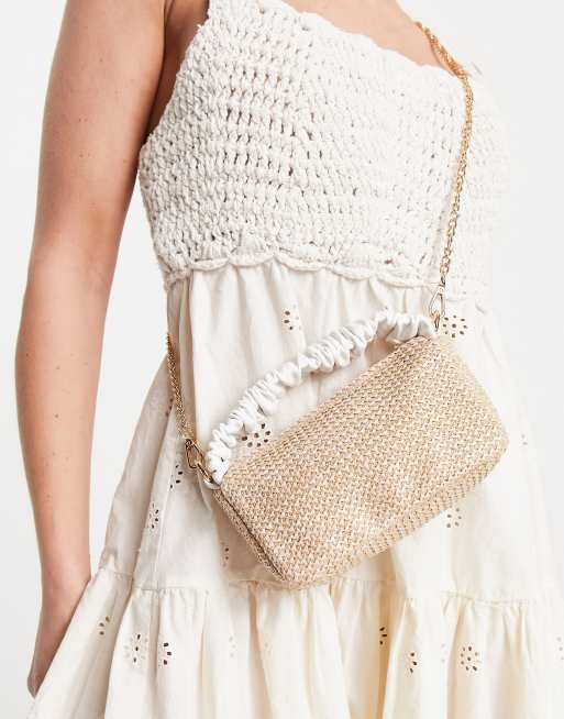 ASOS DESIGN mini crossbody bag with ruched top handle and removeable strap in straw ASOS