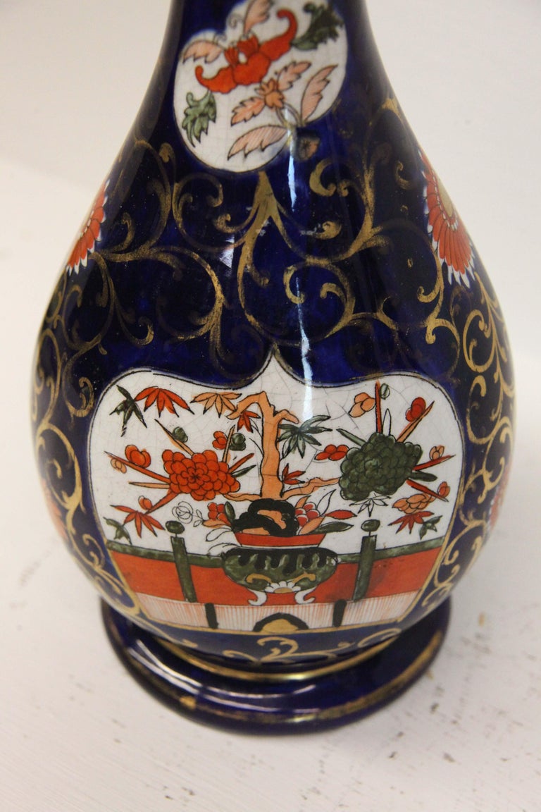 Pair of English Ironstone Vases with Lids For Sale at 1stDibs