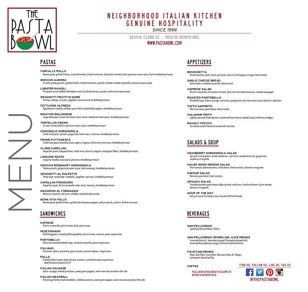Our Menu The Pasta Bowl Chicago
