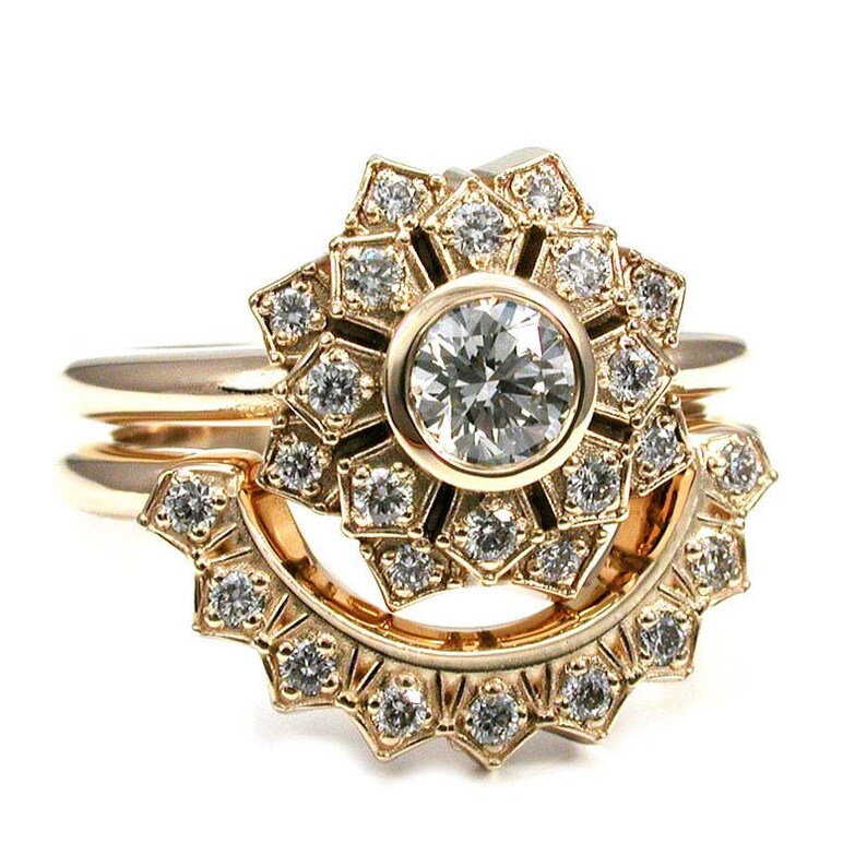 Flower Halo Engagement Ring *price does not include center stone. These rings capture the beauty and grace of blooming flowers, symbolizing love, growth, and renewal. 4.5/5 (204) You can purchase an engagement ring with a halo around your center stone that looks like a flower, or you can purchase a solitaire ring and use one or two wedding bands around that ring to.. Flower Halo Engagement Ring.