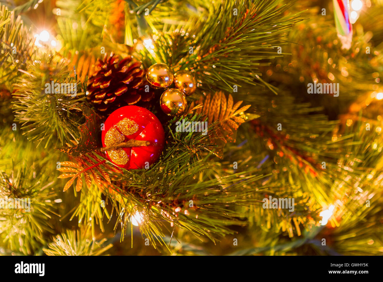 Bright colorful decorations on a Christmas Tree Stock Photo Alamy