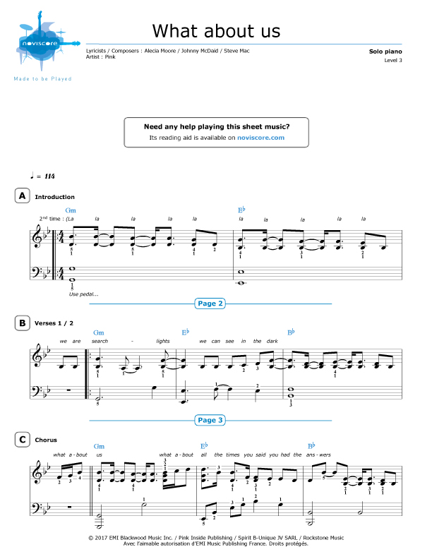 Piano sheet music What about us (Pink) Noviscore sheets