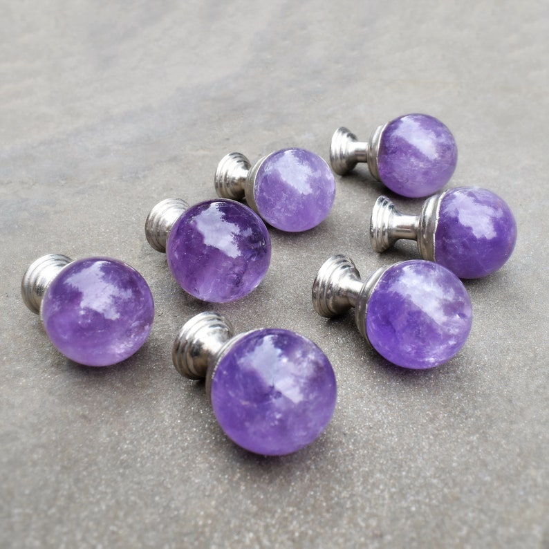 Amethyst Ball Knobs Gemstone Knobs Knobs Kitchen Etsy