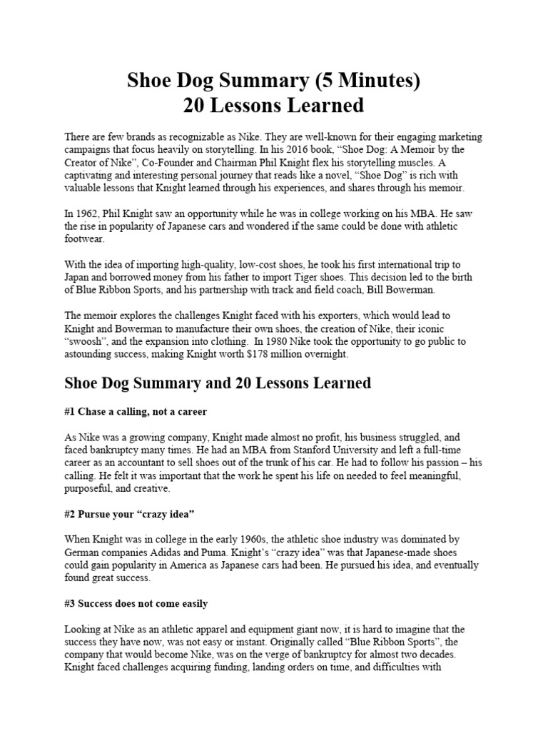 Shoe Dog Summary, Review and Lessons Shoe Dog Summary By-Chapter Shoe dog summary, review and lessons. Dawn in phil knight's shoe dog? Like many entrepreneurs, knight started. It's easy to sell something you believe in. From the very first page, knight. The founder of nike 'faked it until he made it' 😃 2. In addition to the challenges related to building. 1969 in phil knight's shoe dog? Shoe dog is. Shoe Dog Summary By-Chapter.