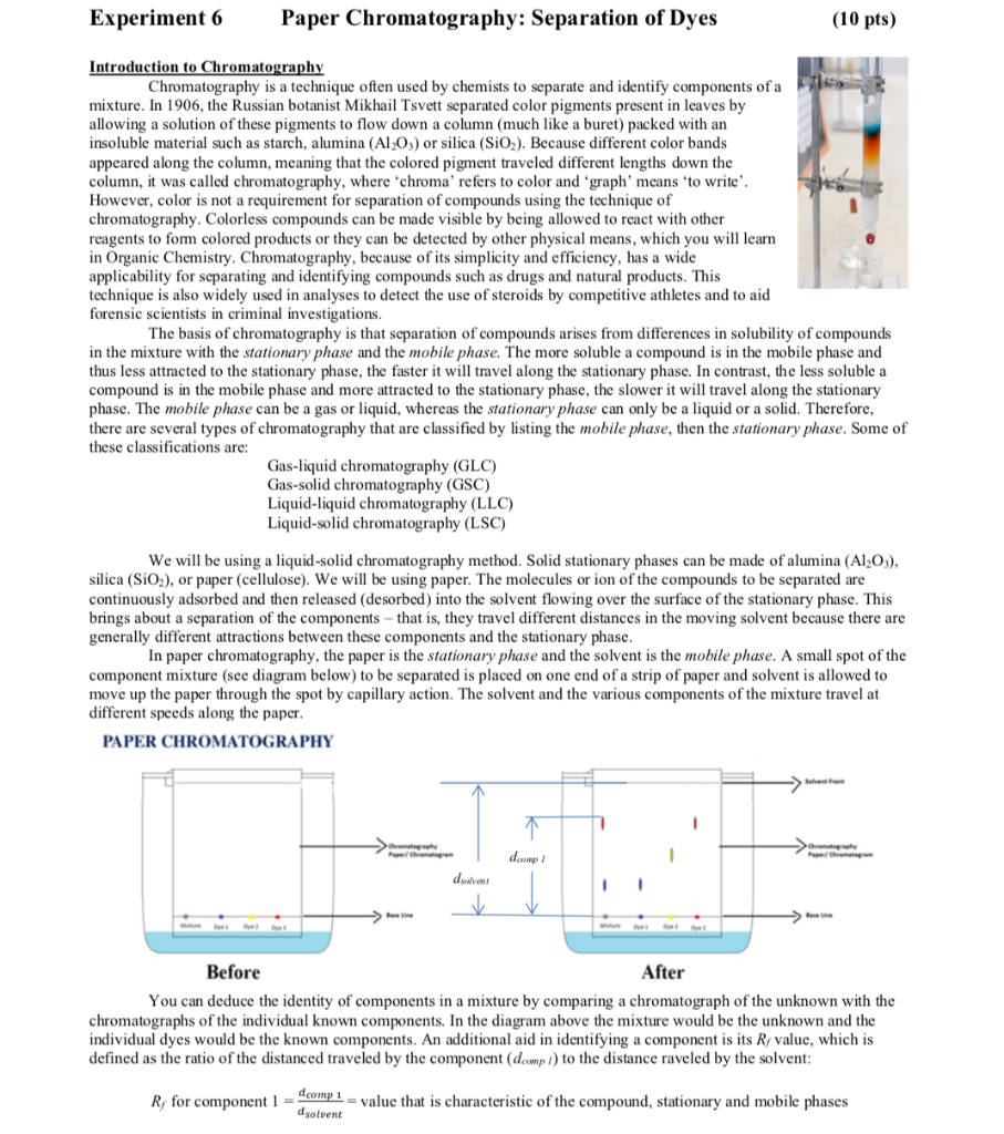 Experiment 6 Paper Chromatography Separation of Dyes