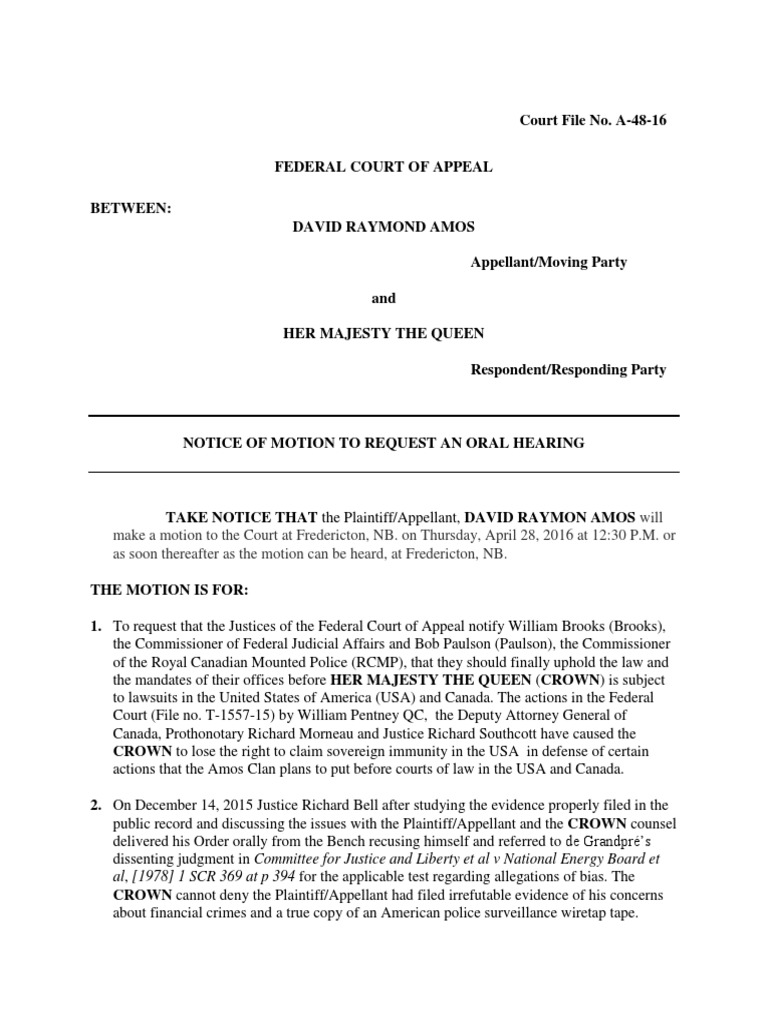 Motion For An Oral Hearing PDF Telephone Tapping Judiciaries