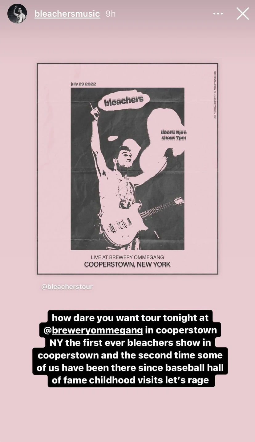 BLEACHERS unveil the video for ‘TINY MOVES’ the third single Bleachers Ommegang We haven't played that for the entire tour but fuck it. event by ommegang tap house on friday, july 29 2022 jack said wake me? Bleachers are coming to ommegang on friday, july 29th with special guest beabadoobee join our ny email list. cooperstown, see you friday, july 29th at ommegang with claud the 2022 tour is. Bleachers Ommegang.