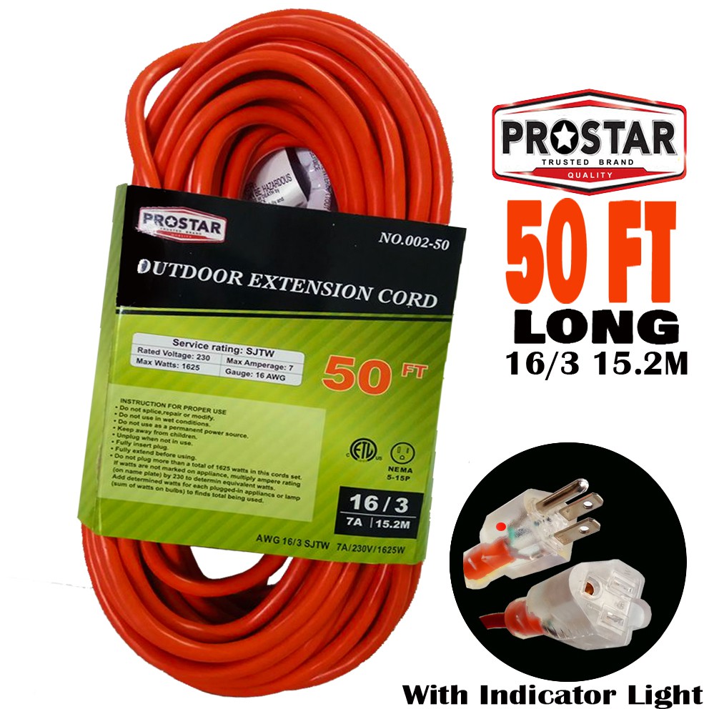 Prostar 50 FT (RED) Outdoor Extension Cord 16/3 Gauge Shopee Philippines