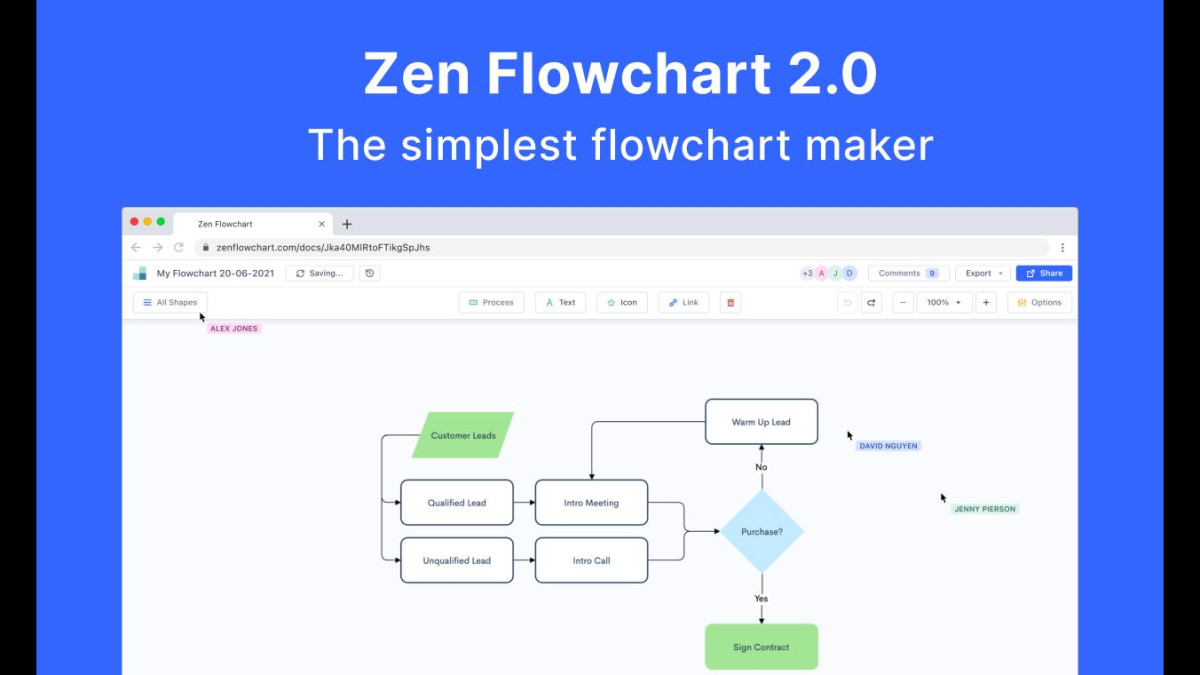 in this video, we'll give you a demo of creating a simple sales process. zen flowchart is an online tool to create flowcharts as well as other graphic elements. It is marketed as the simplest online software to create flowcharts, organizational charts, process charts, sitemaps, and more. The free flowchart maker also has export and publish features, so you can share your work. Voted #1 on product hunt. zen flowchart is the simplest tool to create flowcharts and more. ceate flowcharts easily with our free online flowchart maker.