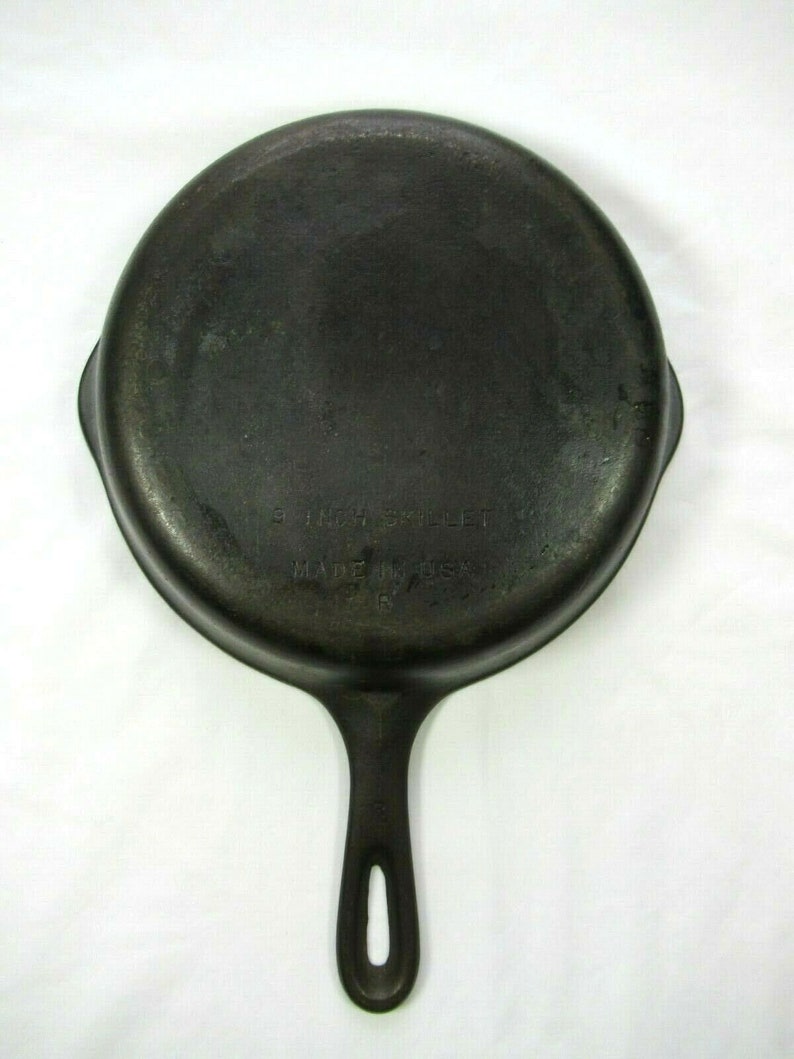 Vintage 9 Cast Iron Skillet, Made in USA, Pour Spout, R, Frying Pan Vintage Cast Iron Skillet Made In Usa Lodge has been making cast iron cookware in the usa since 1896 and is the oldest cast iron manufacturer in america. Information for the vintage cookware enthusiast. This vintage cast iron skillet is marked 8 inch skillet, made in usa, with letter i also a number 5 on the handle. With an exceptionally smooth as cast surface, reminiscent of vintage. Vintage Cast Iron Skillet Made In Usa.