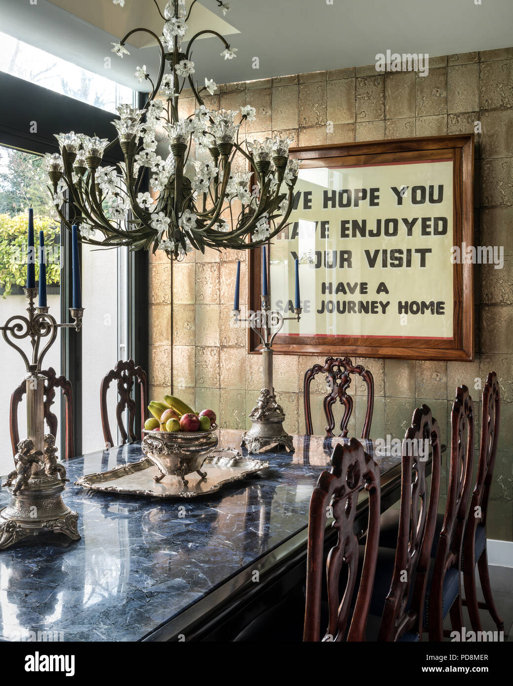 Lead crystal Baccarat chandelier above dining table in London home