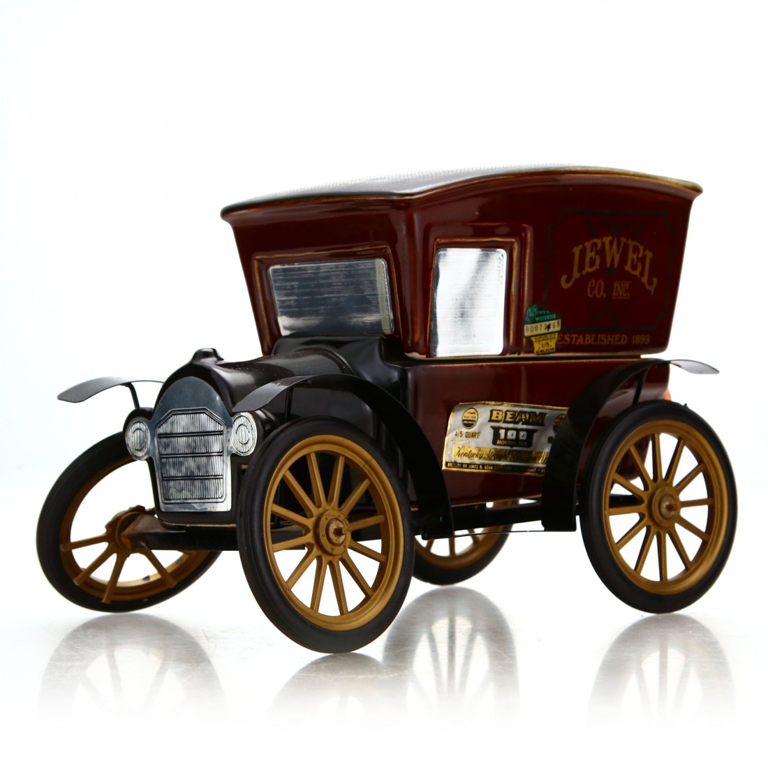 Jim Beam Decanter 1924 Vintage Car Jewel Co. Jim Beam Jewel Tea Wagon Decanter Jim beam decanter jewel tea wagon 75 year ann. This version of the jewel tea wagon is in excellent condition. Start free trial or sign in to see what it's worth. This vintage decanter features a vintage tea wagon with glass body and gold lettering to the side “jewel co. It does not have the original box and is empty.. Jim Beam Jewel Tea Wagon Decanter.