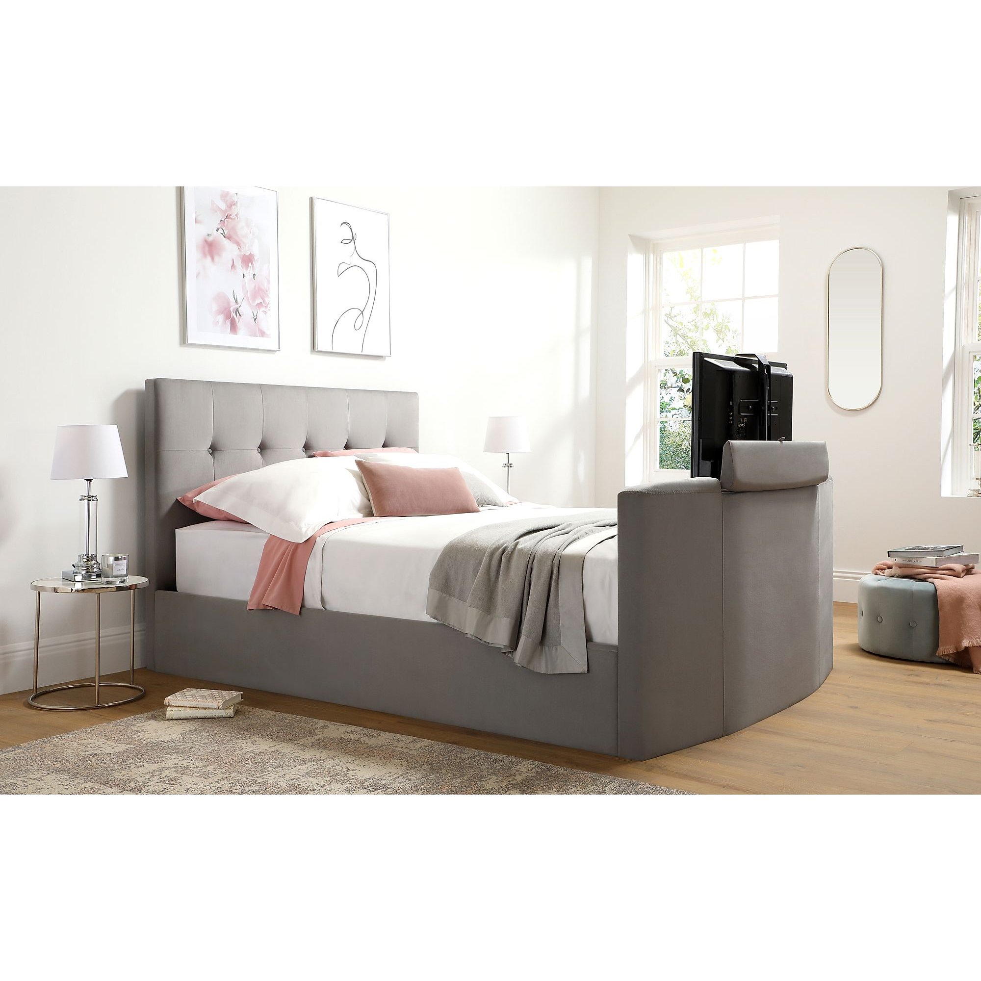 Langham Grey Velvet Ottoman King Size TV Bed by Furniture and Choice King Size Tv Bed For Sale Cheap Experience the ultimate comfort and support, perfect for a restful night's sleep. Whether you’re looking for a sleek and modern platform bed, a luxurious upholstered bed, modern beds or a classic wood bed, we have the perfect. In addition to allowing ample sprawl space, many of. Browse costco’s expansive selection of king mattresses, which can be conveniently filtered by brand,. King Size Tv Bed For Sale Cheap.