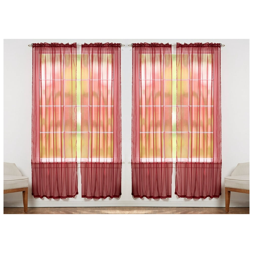 4PACK VALUE Solid Sheer Window Curtain Panels (BURGUNDY) Walmart