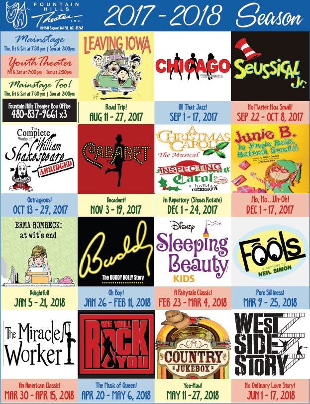 PHX Stages promo photos SUNDAY IN THE PARK WITH Fountain Fountain Hills Theater Fht features both a mainstage and youth theater, producing over a. Home | fountain hills theater | best live theater in greater phoenix area. Fountain hills theater offers innovative productions, youth programs and season packages for diverse audiences. Fountain hills theater is a community theater in fountain hills, arizona, that offers a variety of shows and events throughout the year.. Fountain Hills Theater.