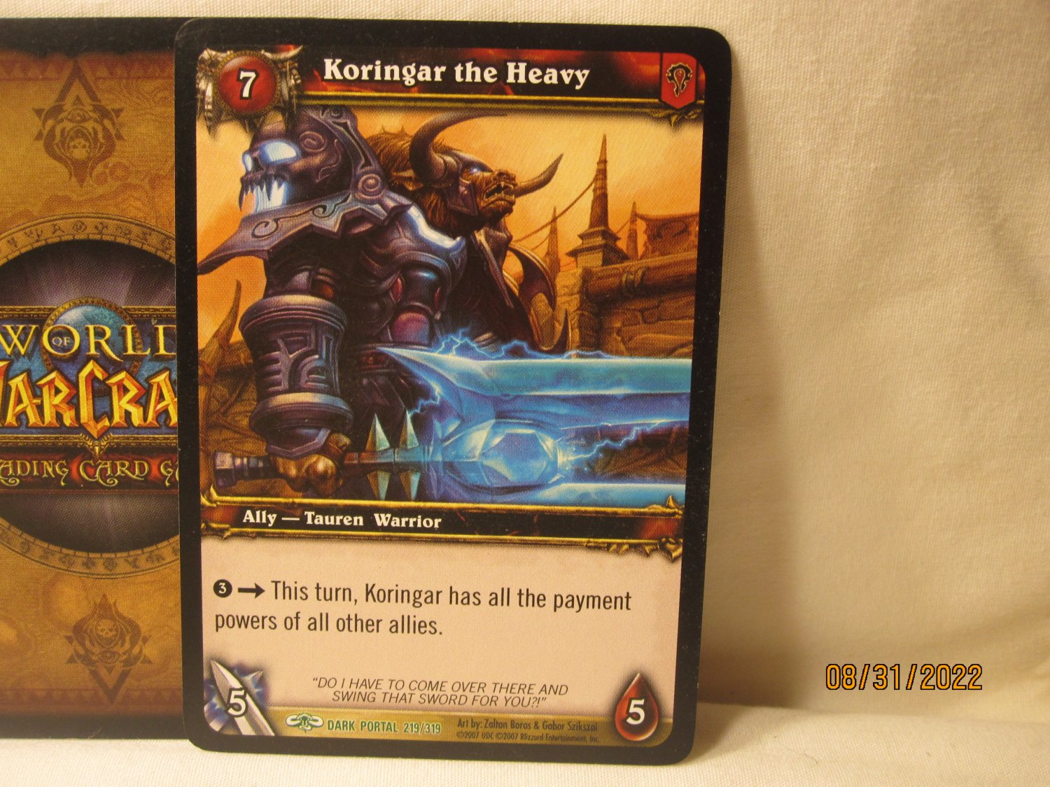 2007 World of Warcraft TCG Dark Portal card 219/319 Koringar the Heavy
