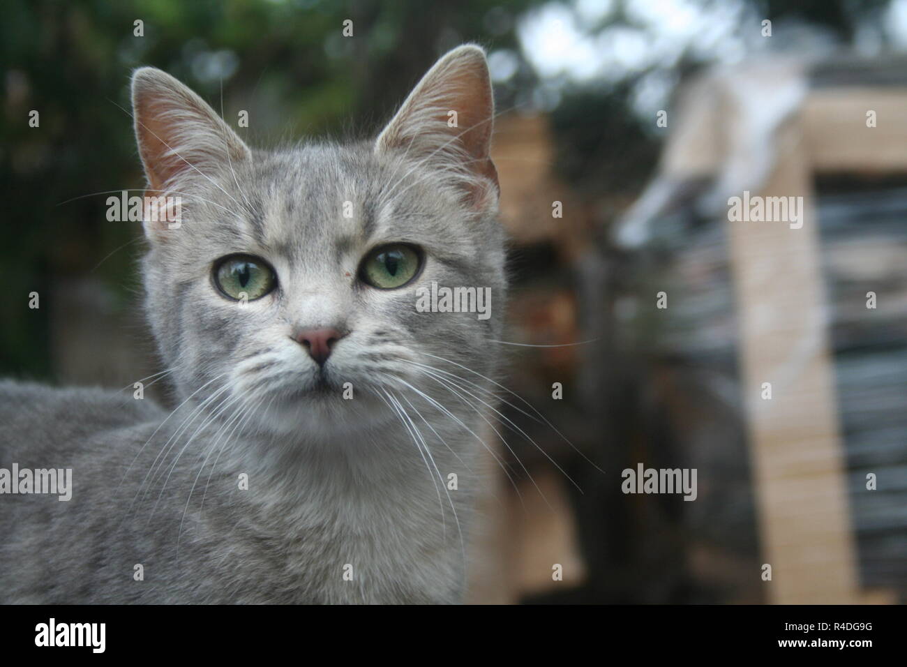 A cute gray cat with green eyes Stock Photo Alamy