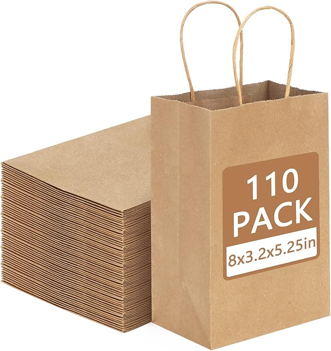 Moretoes 110pcs Brown Paper Bags 5.25x3.2x8 Inches Kraft Paper Bags
