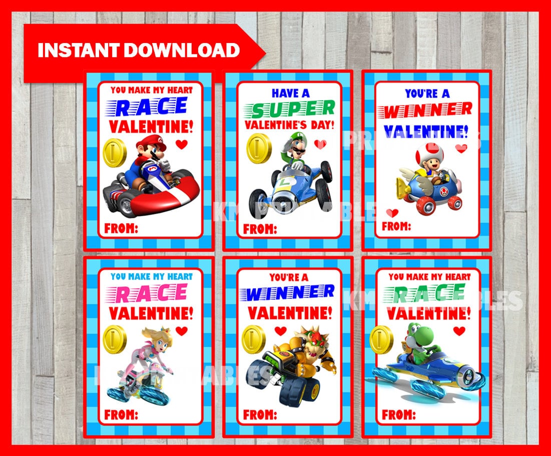 Printable Mario Kart Valentine's Cards Funny Mario Bros Etsy
