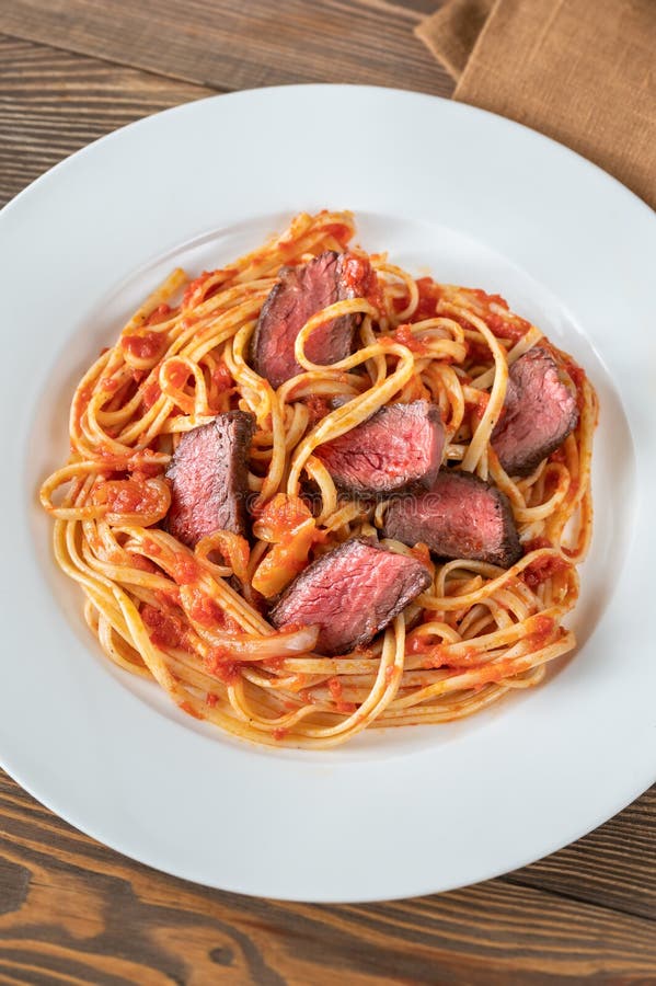 Steak linguine pasta stock photo. Image of classic, amatriciana 188191648