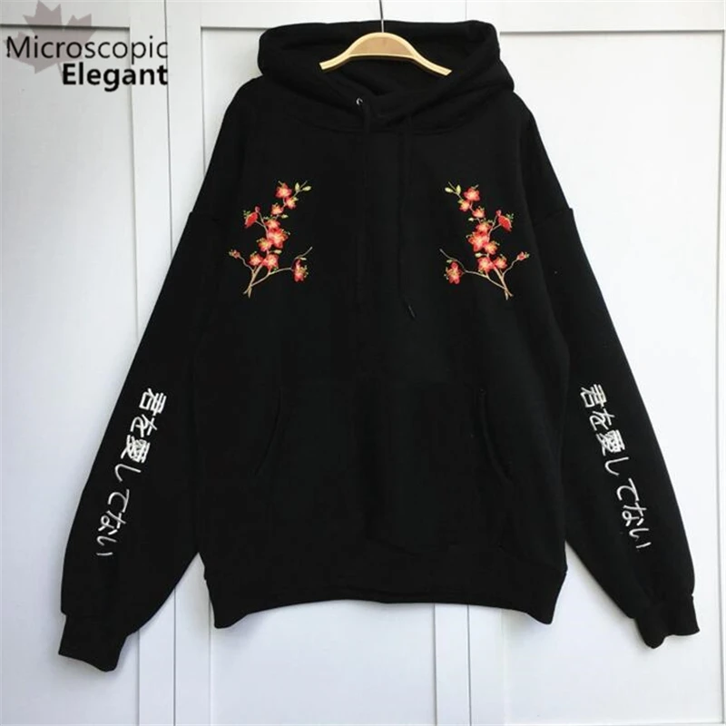 Oversized 2017 hoody Korean college style hooded plum Japanese embroidery big pockets fleece
