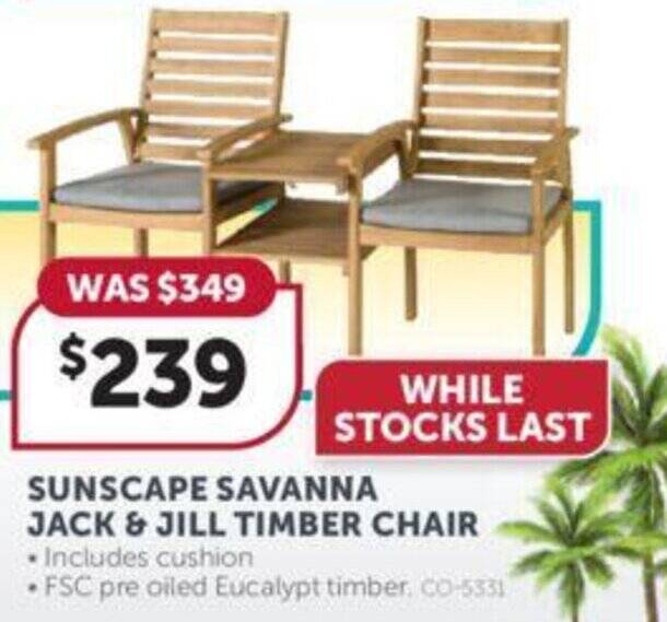 SUNSCAPE SAVANNA JACK & JILL TIMBER CHAIR offer at Stratco
