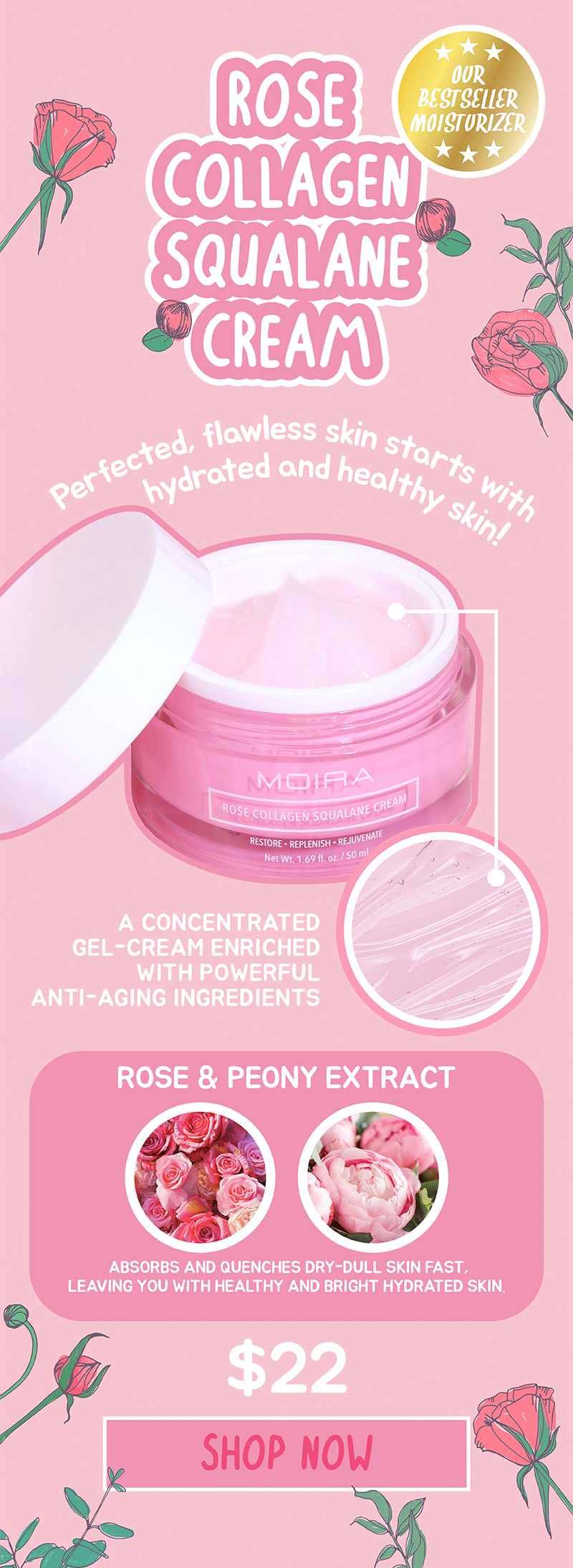 🌹ROSE COLLAGEN SQUALANE CREAM for healthy & radiant skin! Moira Beauty