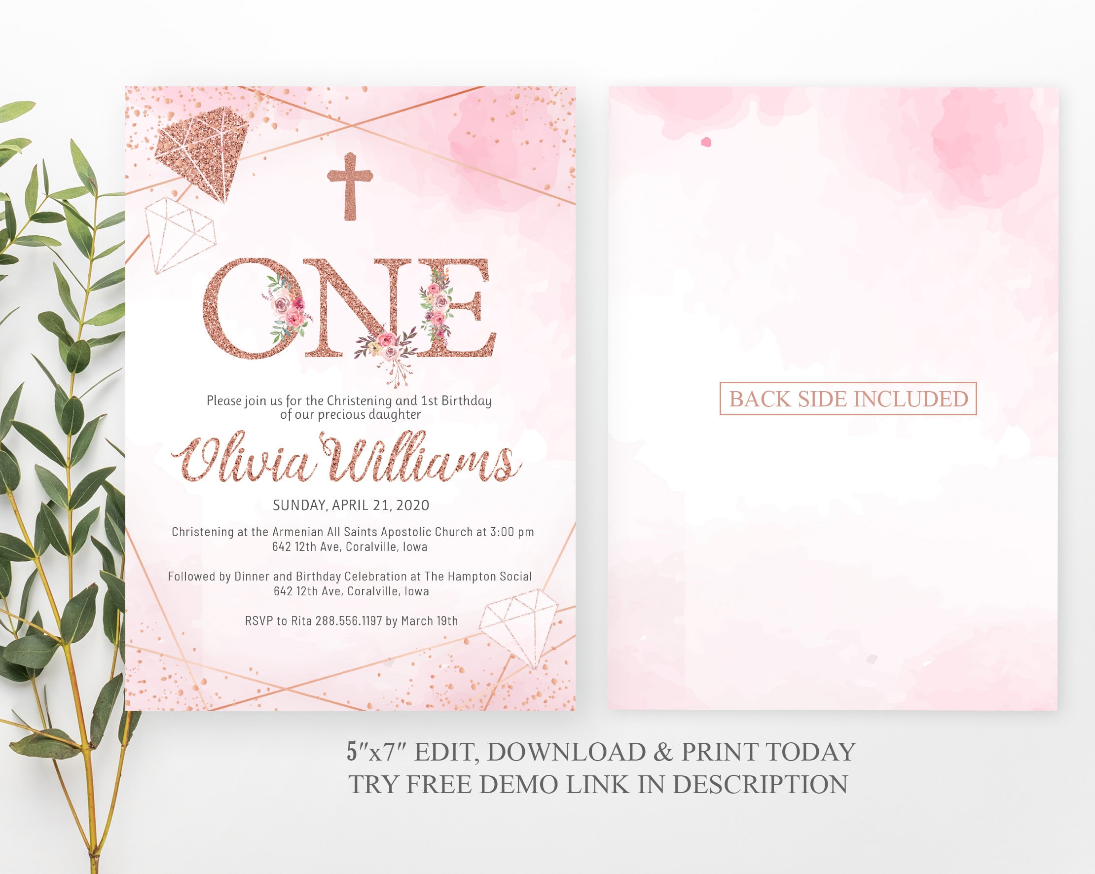 Christening and first birthday invitation. Editable Blush Pink Etsy Christening And 1St Birthday Invitation Template If you want your invitation to look formal and elegant, we have. Create lovely invitations for your baby's first birthday with canva's free printable templates you can personalize in minutes. Download, print or send online with rsvp for free! Easily customize 'baptism' baptism & christening invitation design with your text and photos. Check out our 1st birthday and christening invitation. Christening And 1St Birthday Invitation Template.