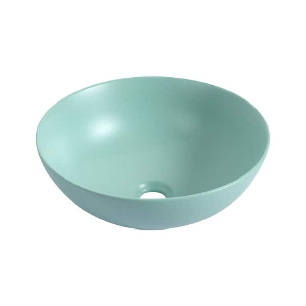 Tatahance Art Matt Light Green Ceramic Round Vessel Sink W99984051Z