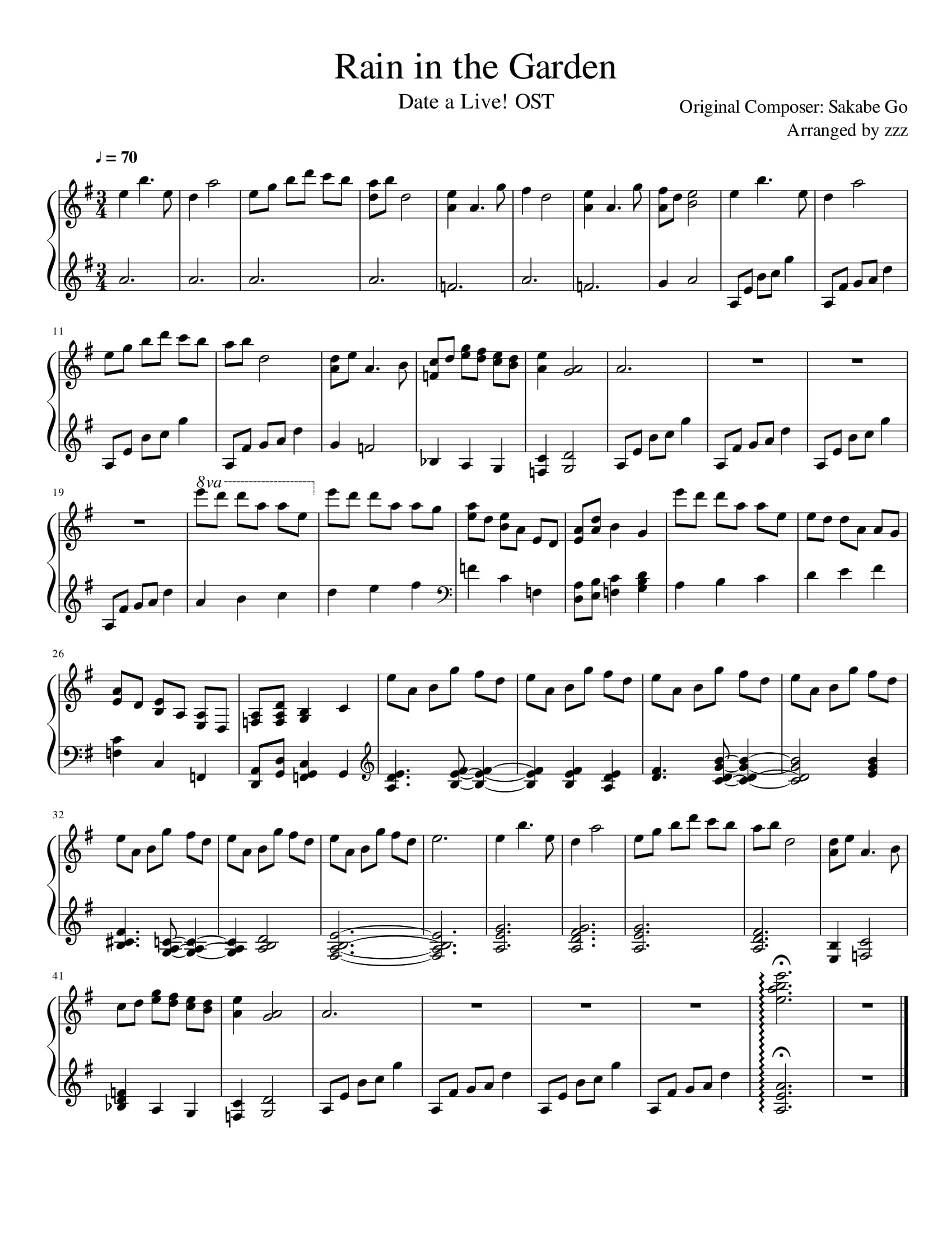 Rain in the Garden Date a Live! OST sheet music Sheethost