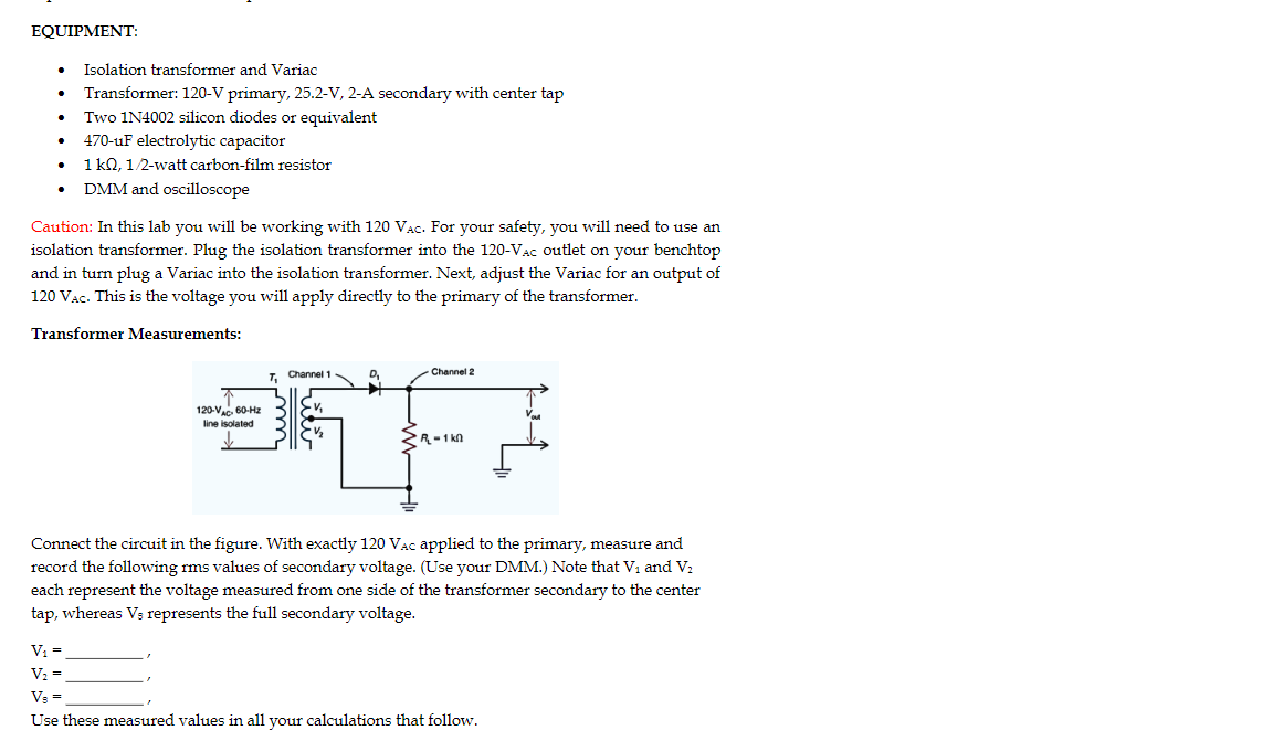 Solved EQUIPMENT Isolation transformer and Variac