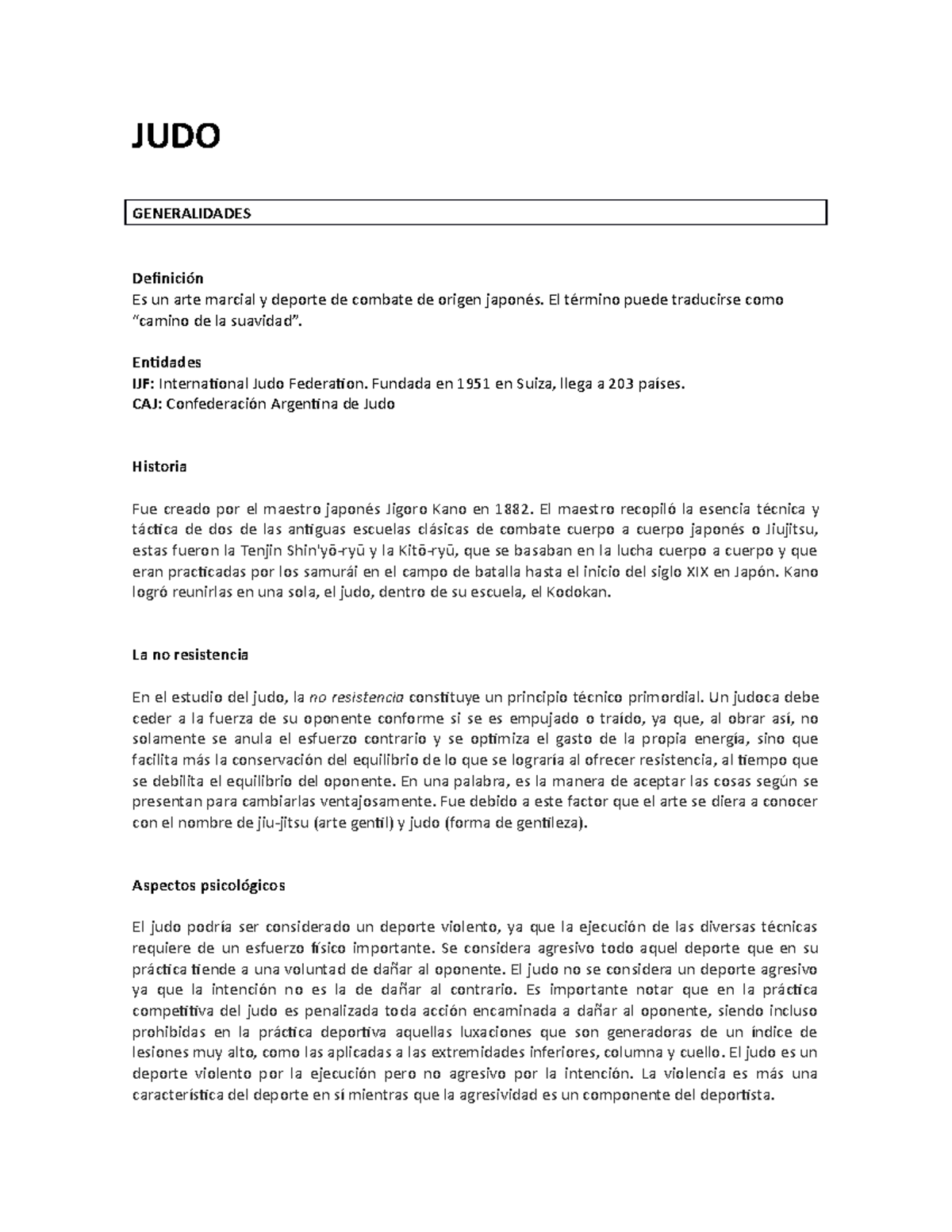 Apunte JUDO Resumen total JUDO GENERALIDADES Definición Es un arte marcial y deporte de