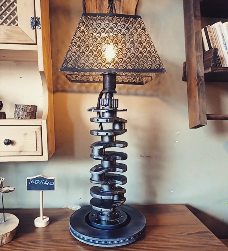 Crankshaft Lamp Etsy Crankshaft Lamp Etsy Discover (and save!) your own pins on pinterest This is a unique desk lamp. Approximately 34” high and weighs approximately 30lbs. This lamp is hand built from a crankshaft of a modern sportbike. How to create a manly lamp from a car engine's crankshaft that will provide light and virile inspiration for years to come. The base doubles as a. Crankshaft Lamp Etsy.