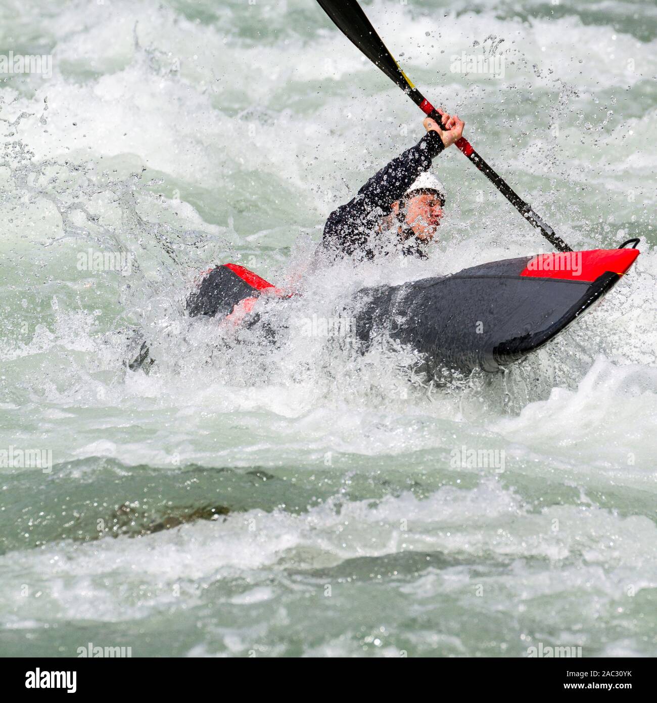 kayak race in the rapids Stock Photo Alamy