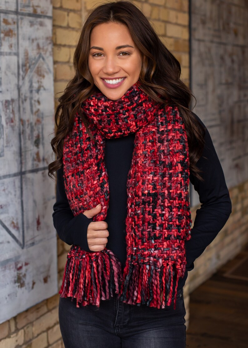 Red Grey & Black Loom Woven Long Scarf Women's Winter Etsy