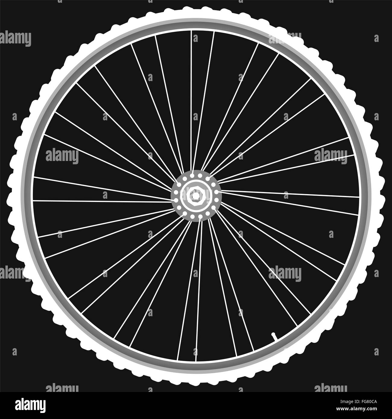bike wheel with tire and spokes isolated on black background Stock