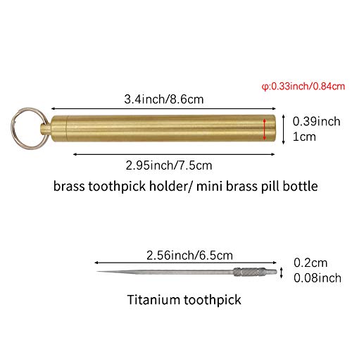 HRX Package Waterproof Brass Toothpick Holder Keychain with 2 Titanium