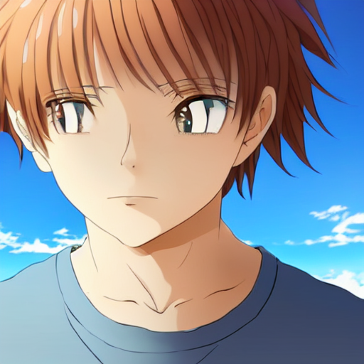 prompthunt Anime boy standing on the beach, smiling at the camera