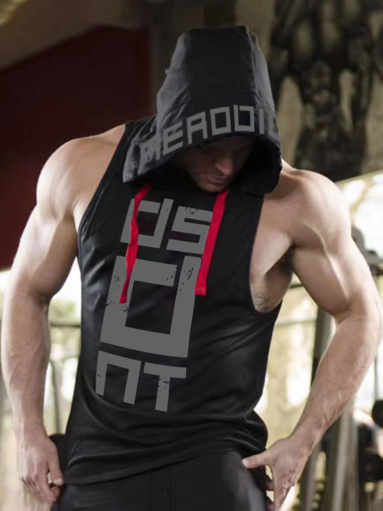 Muscle hooded fitness clothing men's vest sports vest running casual