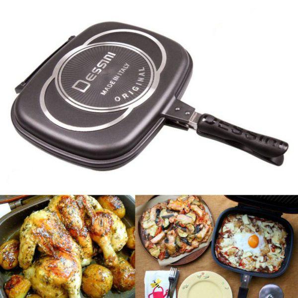 Dessini double side die casting grill pan black/silver 36centimeter. With the help of this cutting. Other than grilling, it is ideal for frying and also can be used as a pressure pan. Find out more great deal and exclusive offers from dessini.com.my Double sided grill pan, double frying pan portable baking pan for barbecue, 12.6 x 10.2 x 2.6 (black) aluminum. 1 x dessini double sided 36cm pan.