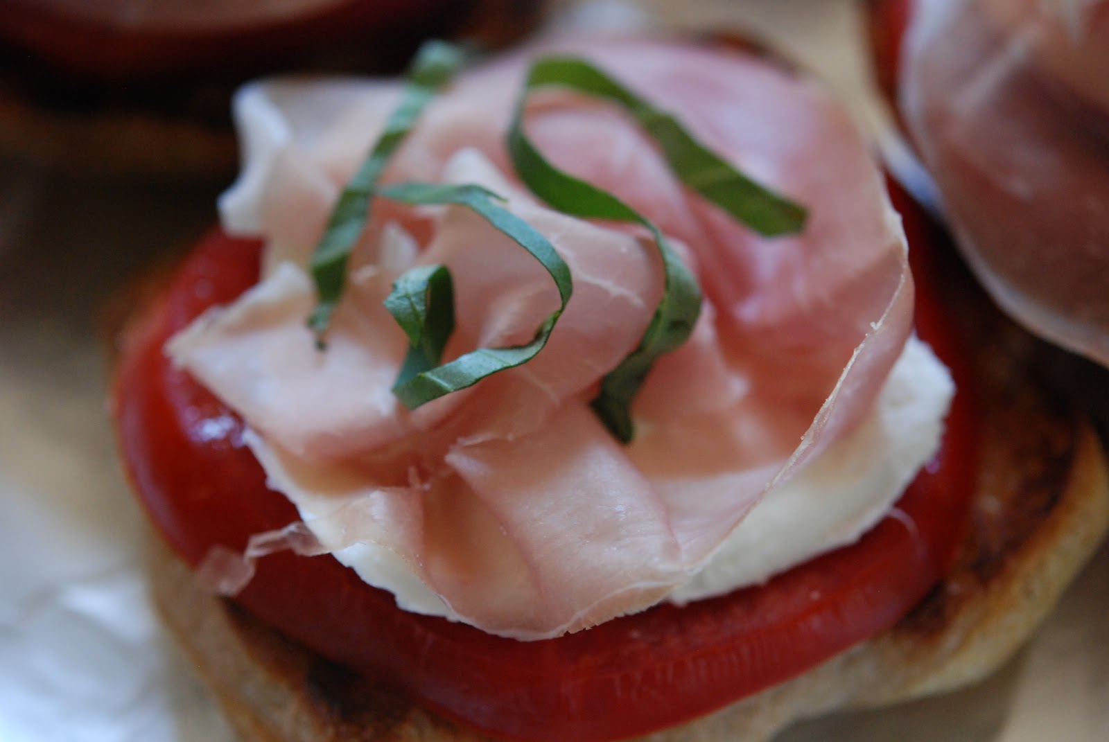marys bites Tomato, Mozzarella, Prosciutto and Basil Open Faced Sandwich